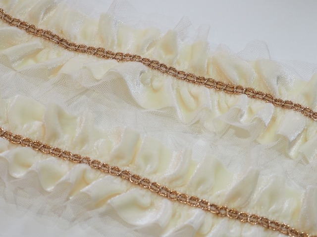 フリフリ フリルチュールがかわいい♡オリジナル まんなかから両側にふわっとフリルが柔らかく広がるリボンです。 チュールの透け感や光沢感が綺麗です。 縁取りしたカラーの糸が作品を華やかに引き立てます。 バッグや小物に、ショルダーに付けるとかわいらしく仕上がります。 【カラー】 OL05.ニューベージュ/グリーン OL06.イエロー/ネイビー OL07.イエロー/ブルー OL08.レッド/ブラウン 幅:約6cm 長さ:50cm ※若干の誤差はご了承下さい。 ※繋ぎ目がないよう検品をして糸の処理をさせていただきますが、見落としがある場合もあります。 ご了承いただきますようよろしくお願いします。 フリルは圧縮した状態で発送させていただきます。 色むらとほつれがある場合があります。 お洗濯の際に色移りする可能性があります。 パソコンの環境によっては写真の色味が実際の商品と少し異なる場合があります。 #ハンドメイド #ピアス #イヤリング #アクセサリー #オリジナル #ビンテージ調 #レトロ #輸入 #ネックレス #vintage #モノトーン #レア #モノクロ #ツートン #編み込み #マット#クラシカル #アシンメトリー #ナチュラル #組み合わせ #ブレード #テープ #刺繍 #リボン #レース #クロスステッチ #チロルテープ #刺繍 テープ #ヴィンテージ リボン #アンティーク リボン #リメイク #チロリアンテープ #エスニック リボン #アジアン #幅広テープ #ベルト #刺繍リボン #刺繍レース #チロリアンテープ #アクセサリーパーツ #ヘアーアクセサリー #刺繍リボンピアス #刺繍リボンヘアーアクセサリー #シュシュ #マスクバンド