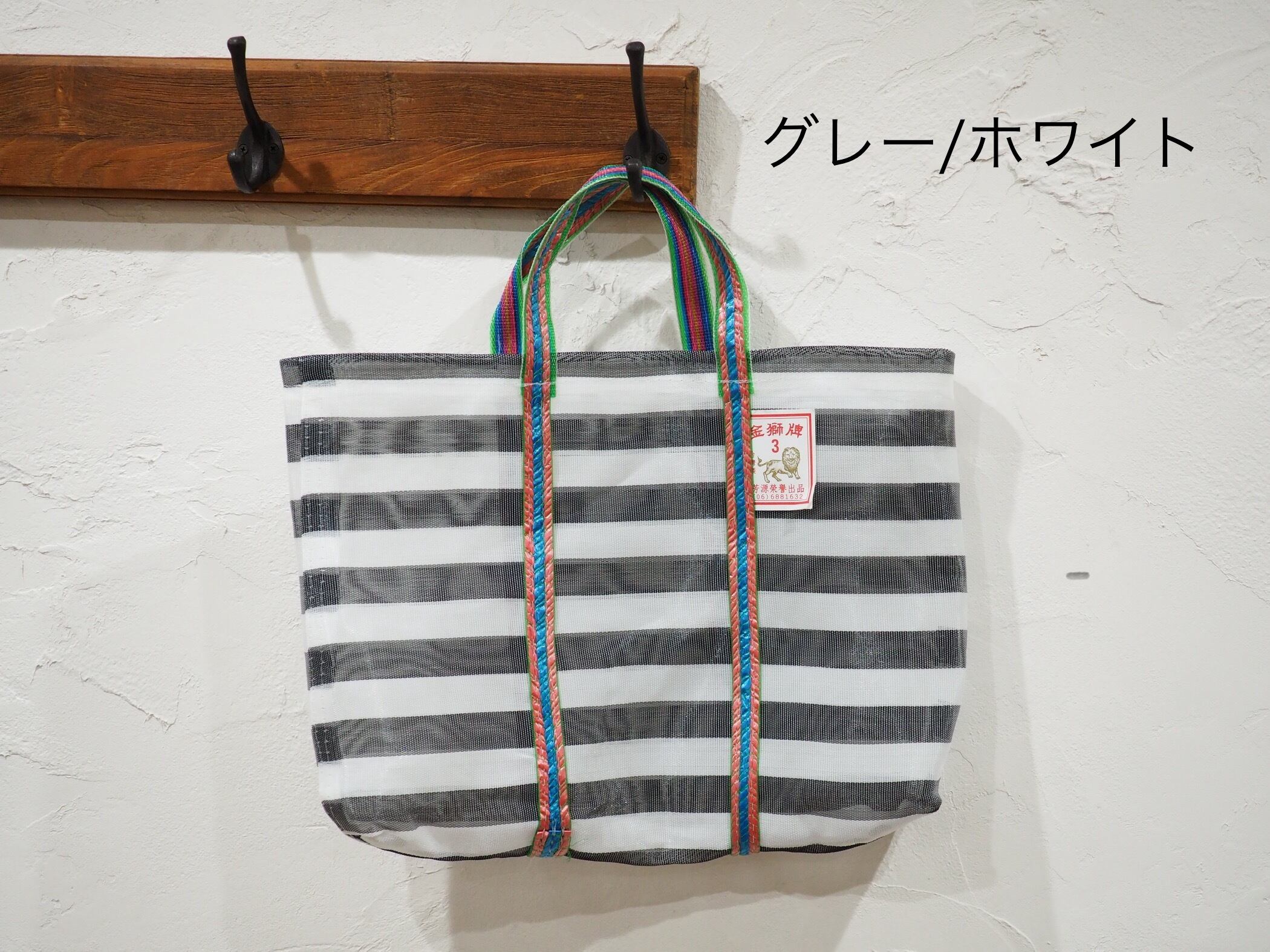 漁師網バッグ 台湾 金獅牌 エコバッグ メッシュバッグ ボーダー 軽量マルシェバッグ 収納 手提げ 台湾雑貨 迪化街