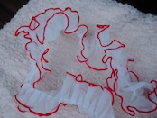 縁取りしたカラーの糸が作品を華やかに引き立てます。