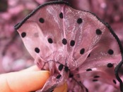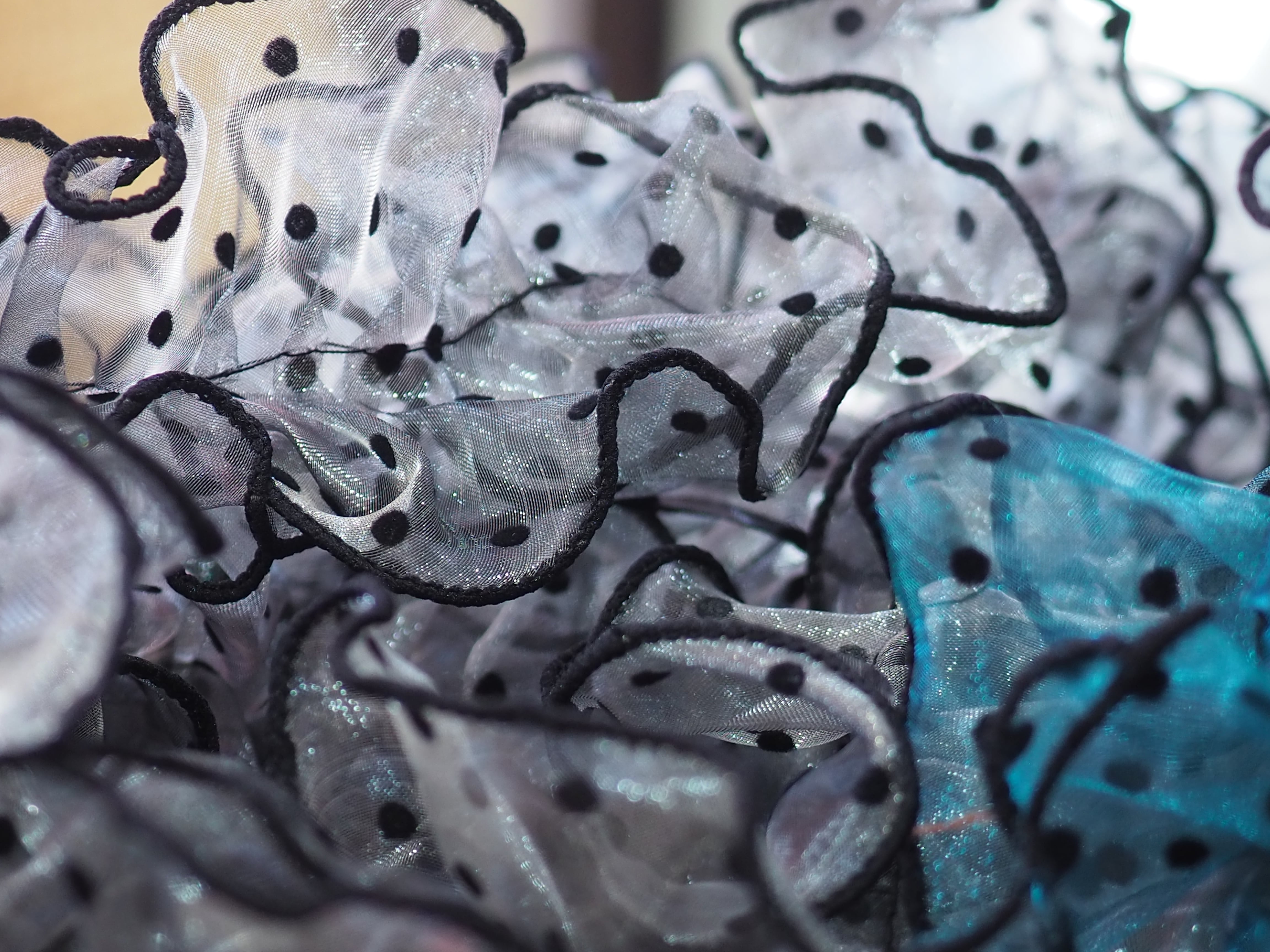 まんなかから両側にふわっとフリルが柔らかく広がるリボンです。