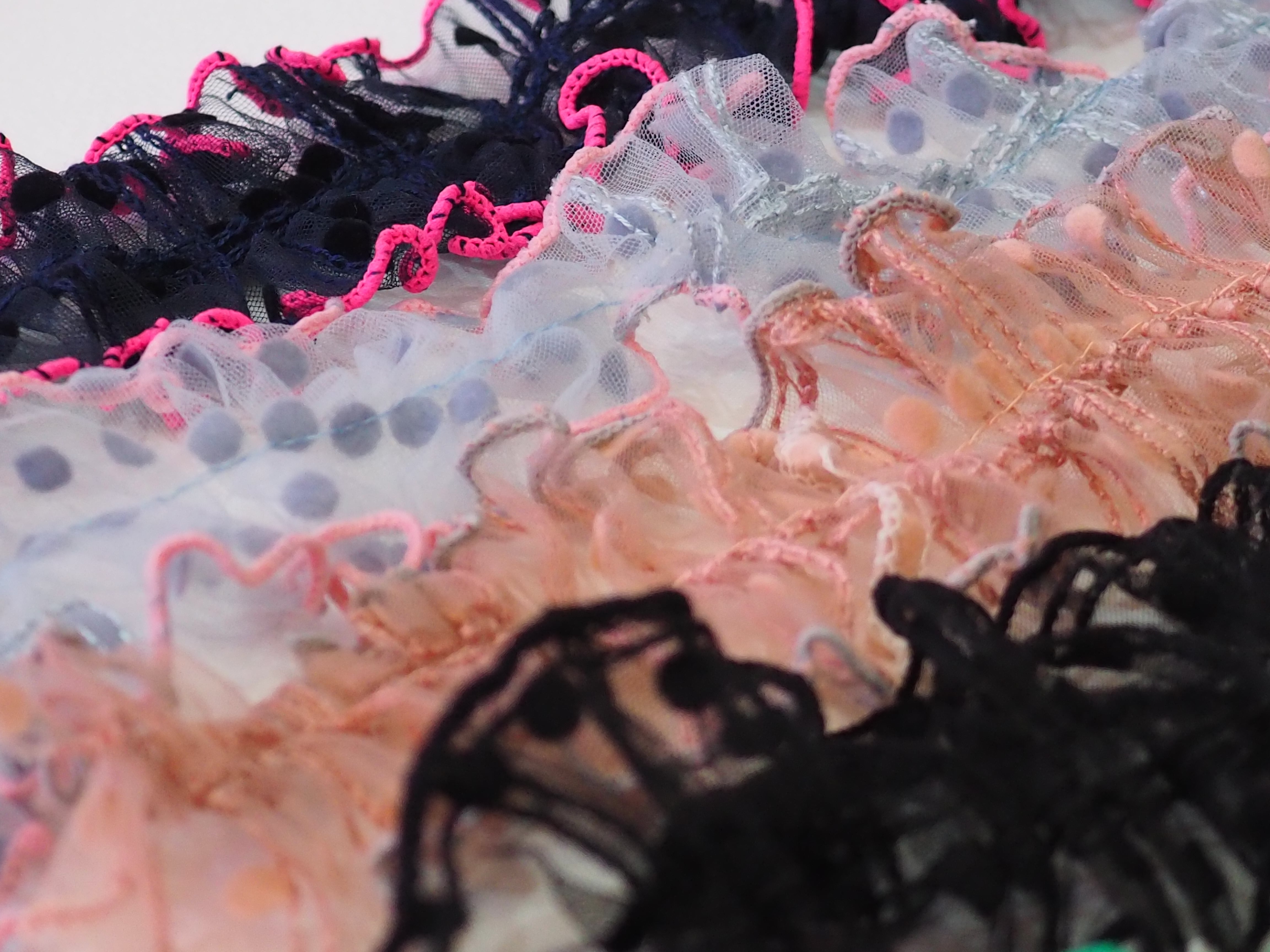 フリフリ♡ドット/チェック縁取りバイカラーレースフリルリボン 幅6cm 長さ50cm NO.DC1~5オリジナル