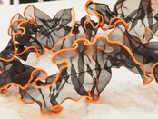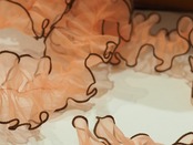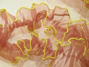まんなかから両側にふわっとフリルが柔らかく広がるリボンです。