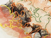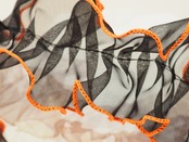 縁取りしたカラーの糸が作品を華やかに引き立てます。