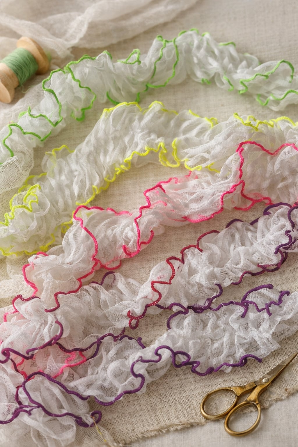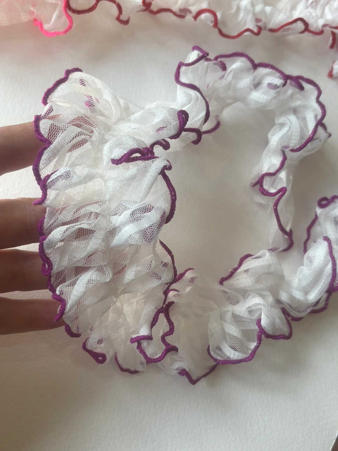 まんなかから両側にふわっとフリルが柔らかく広がるリボンです。