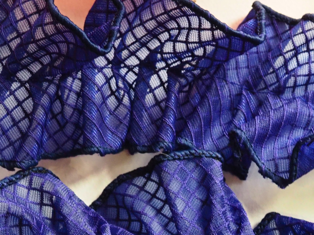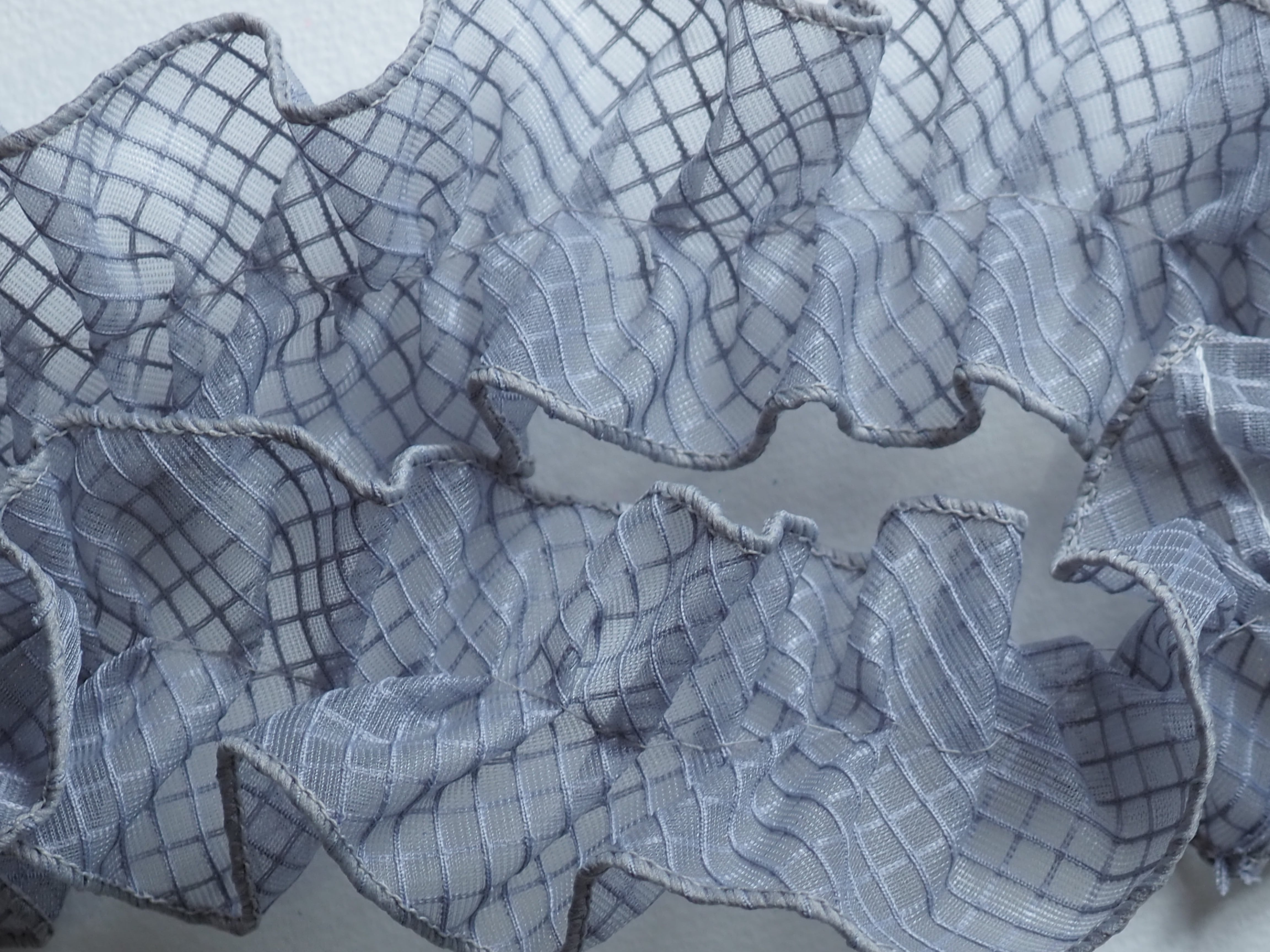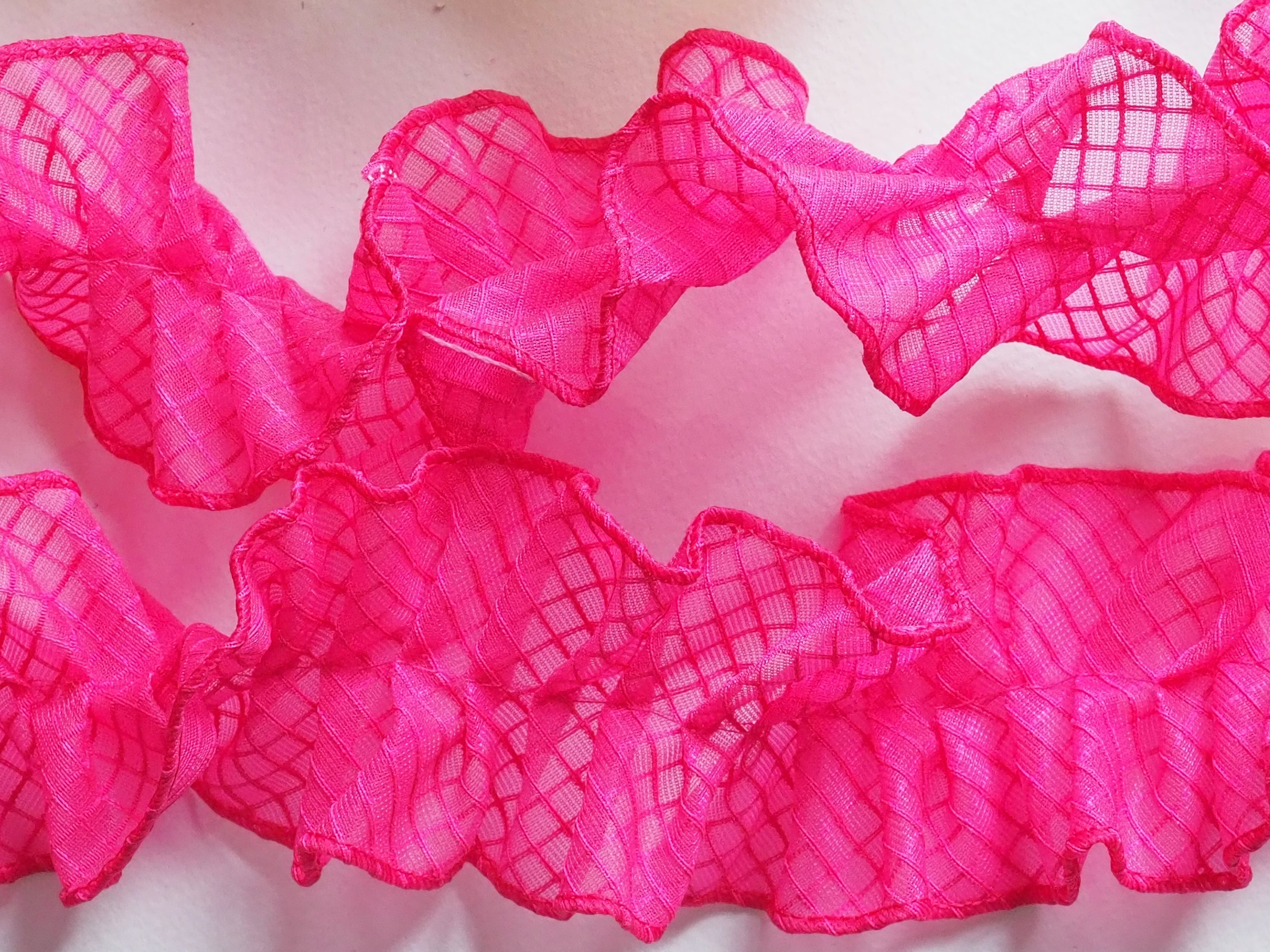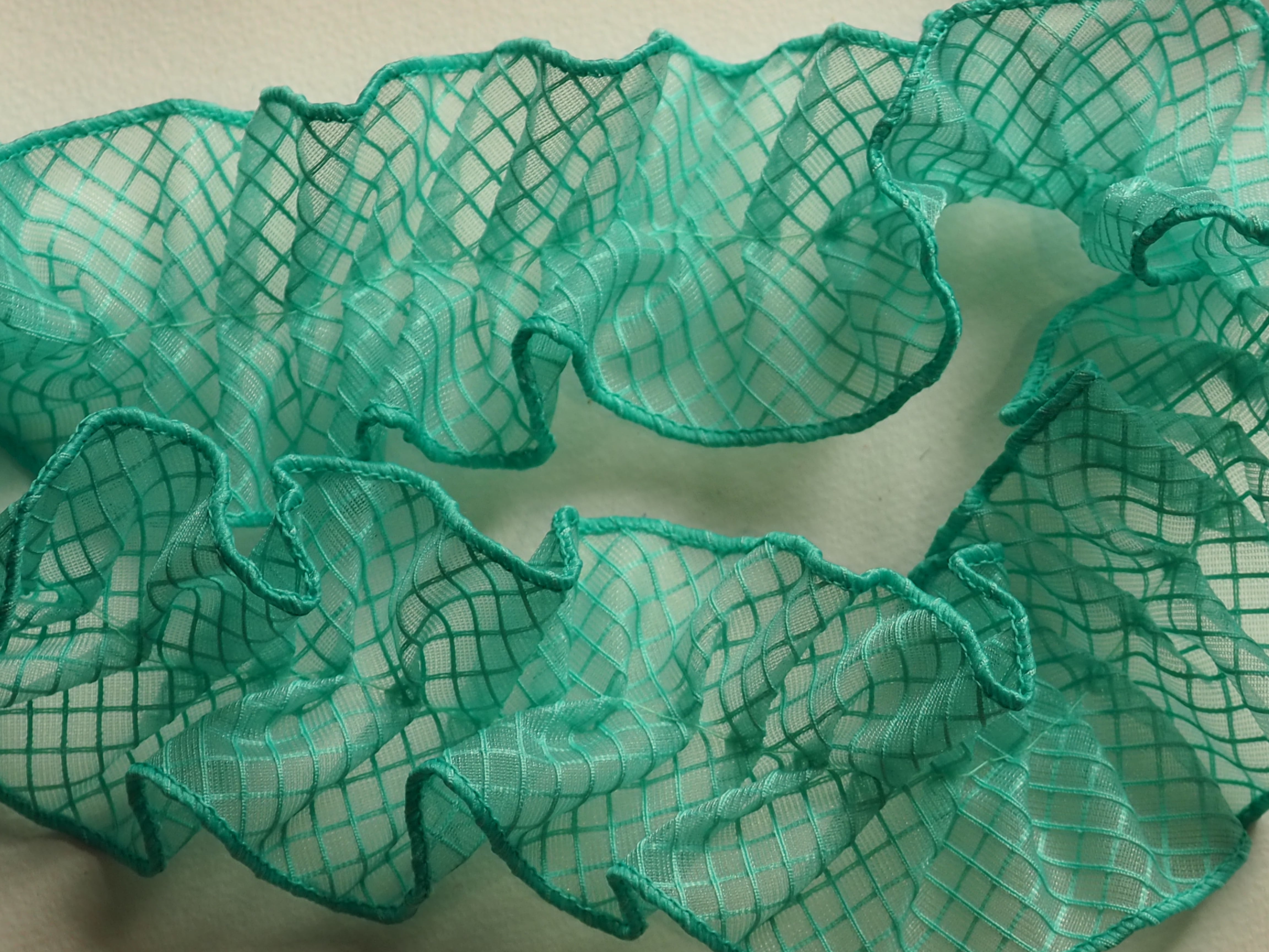 透明のPVC素材を使用したネットビニール生地で作った新素材フリルリボンです。