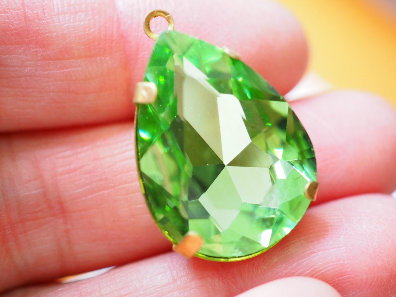 大きめ クリスタルビジュー パーツ ツメあり ドロップ グリーン