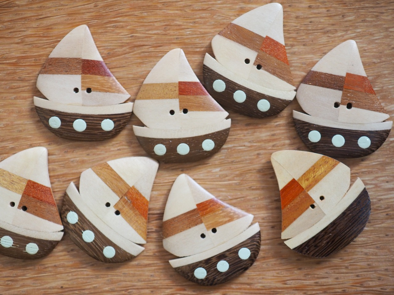 ヨットのウッドボタン 2匹